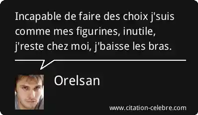 Incapable de faire des choix j'suis comme mes figurines, inutile, j'reste chez moi, j'baisse les bras.