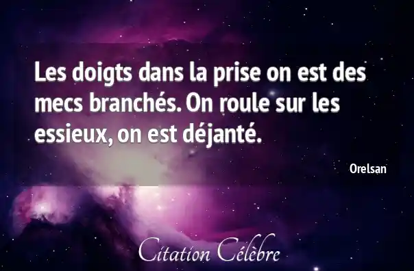 Les doigts dans la prise on est des mecs branchés. On roule sur les essieux, on est déjanté.