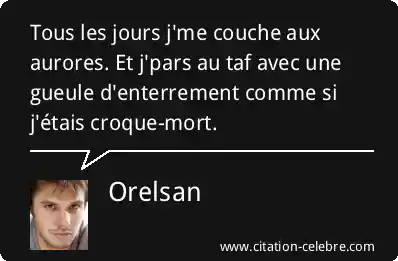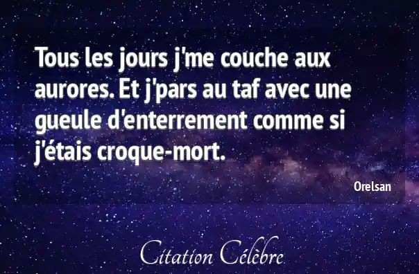 Tous les jours j'me couche aux aurores. Et j'pars au taf avec une gueule d'enterrement comme si j'étais croque-mort.