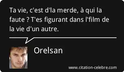 Ta vie, c'est d'la merde, à qui la faute ? T'es figurant dans l'film de la vie d'un autre.