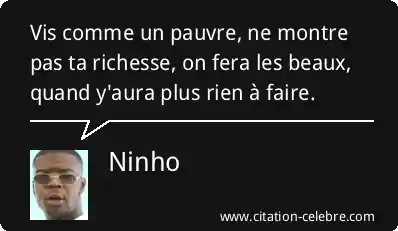 Vis comme un pauvre, ne montre pas ta richesse, on fera les beaux, quand y'aura plus rien à faire.