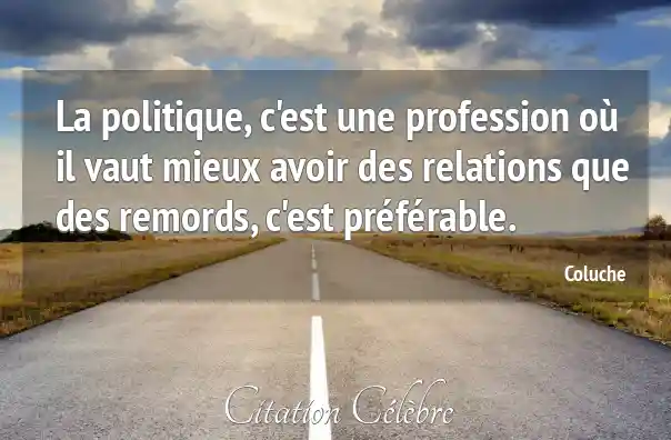 La politique, c'est une profession où il vaut mieux avoir des relations que des remords, c'est préférable.