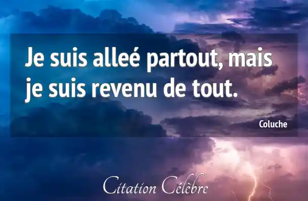 Je suis alleé partout, mais je suis revenu de tout.
