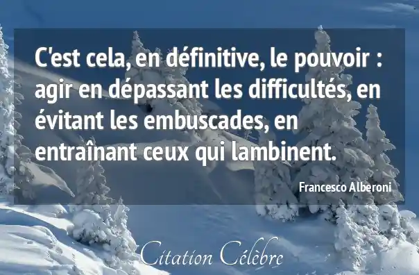 C'est cela, en définitive, le pouvoir : agir en dépassant les difficultés, en évitant les embuscades, en entraînant ceux qui lambinent.