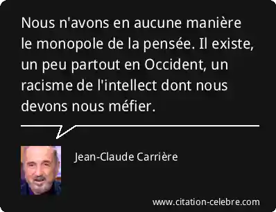 Nous n'avons en aucune manière le monopole de la pensée. Il existe, un peu partout en Occident, un racisme de l'intellect dont nous devons nous méfier.