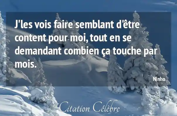 J'les vois faire semblant d'être content pour moi, tout en se demandant combien ça touche par mois.