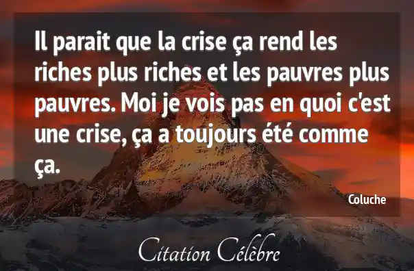 Il parait que la crise ça rend les riches plus riches et les pauvres plus pauvres. Moi je vois pas en quoi c'est une crise, ça a toujours été comme ça.