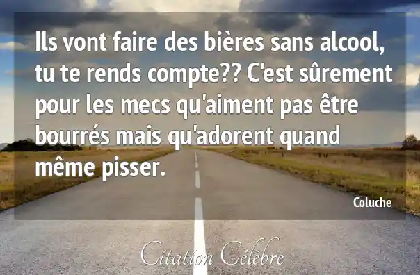 Ils vont faire des bières sans alcool, tu te rends compte?? C'est sûrement pour les mecs qu'aiment pas être bourrés mais qu'adorent quand même pisser.