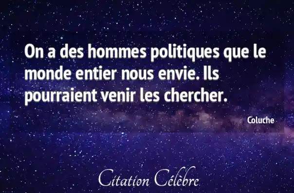 On a des hommes politiques que le monde entier nous envie. Ils pourraient venir les chercher.