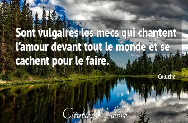 Sont vulgaires les mecs qui chantent l'amour devant tout le monde et se cachent pour le faire.