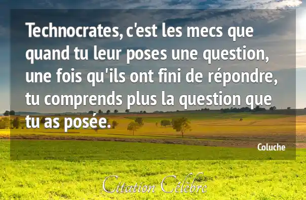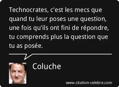 Technocrates, c'est les mecs que quand tu leur poses une question, une fois qu'ils ont fini de répondre, tu comprends plus la question que tu as posée.