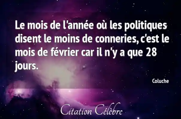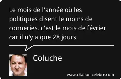 Le mois de l'année où les politiques disent le moins de conneries, c'est le mois de février car il n'y a que 28 jours.