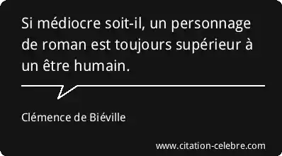Citation Clémence de Biéville roman : Si médiocre soit-il, un personnage de roman est toujours supérieur...