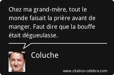Chez ma grand-mère, tout le monde faisait la prière avant de manger. Faut dire que la bouffe était dégueulasse.