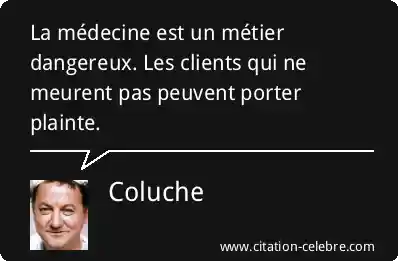 La médecine est un métier dangereux. Les clients qui ne meurent pas peuvent porter plainte.