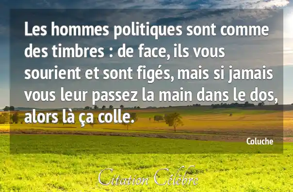 Les hommes politiques sont comme des timbres : de face, ils vous sourient et sont figés, mais si jamais vous leur passez la main dans le dos, alors là ça colle.