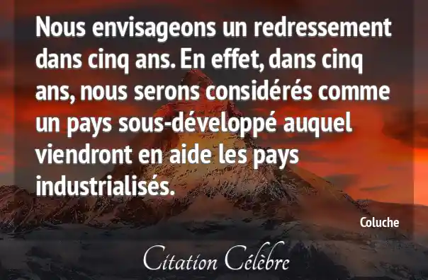 Nous envisageons un redressement dans cinq ans. En effet, dans cinq ans, nous serons considérés comme un pays sous-développé auquel viendront en aide les pays industrialisés.