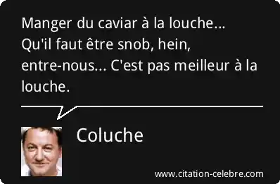 Manger du caviar à la louche... Qu'il faut être snob, hein, entre-nous... C'est pas meilleur à la louche.