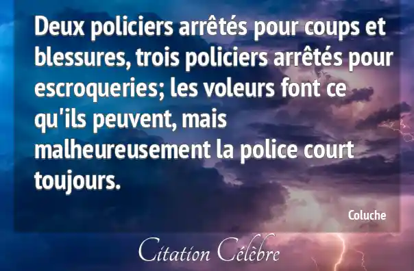 Deux policiers arrêtés pour coups et blessures, trois policiers arrêtés pour escroqueries; les voleurs font ce qu'ils peuvent, mais malheureusement la police court toujours.