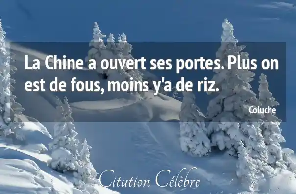 Citation Coluche moins : La Chine a ouvert ses portes. Plus on est de...