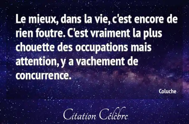 Le mieux, dans la vie, c'est encore de rien foutre. C'est vraiment la plus chouette des occupations mais attention, y a vachement de concurrence.