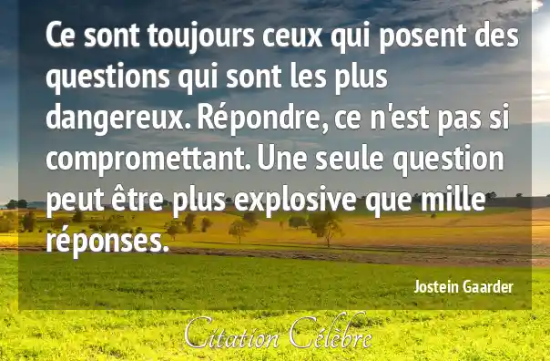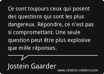 Ce sont toujours ceux qui posent des questions qui sont les plus dangereux. Répondre, ce n'est pas si compromettant. Une seule question peut être plus explosive que mille réponses.