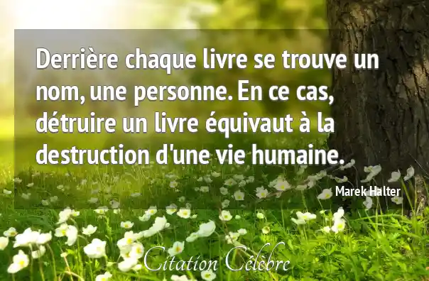 Derrière chaque livre se trouve un nom, une personne. En ce cas, détruire un livre équivaut à la destruction d'une vie humaine.