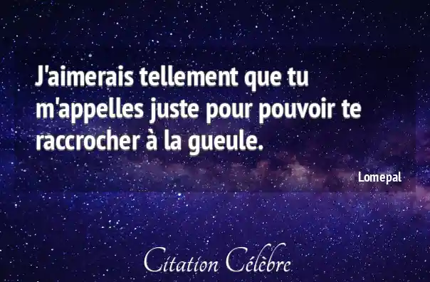 J'aimerais tellement que tu m'appelles juste pour pouvoir te raccrocher à la gueule.