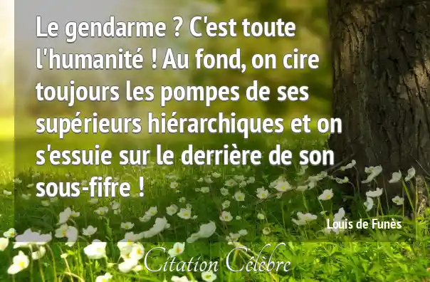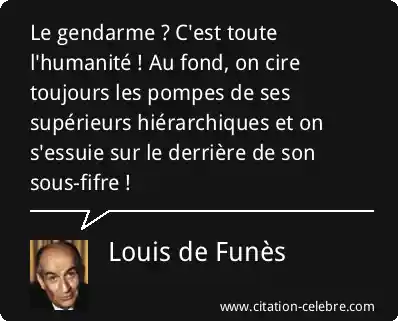 Le gendarme ? C'est toute l'humanité ! Au fond, on cire toujours les pompes de ses supérieurs hiérarchiques et on s'essuie sur le derrière de son sous-fifre !