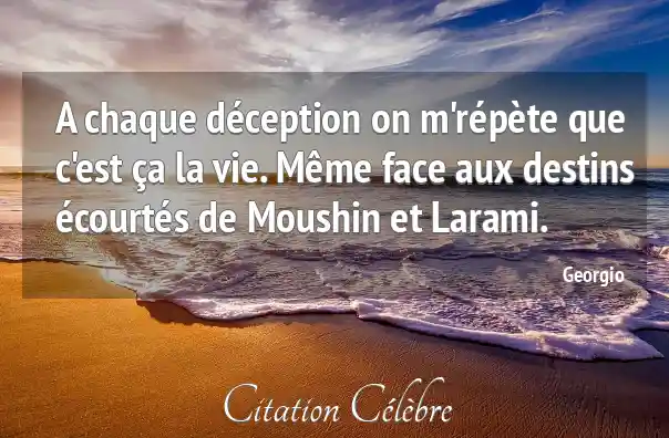 A chaque déception on m'répète que c'est ça la vie. Même face aux destins écourtés de Moushin et Larami.
