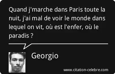 Quand j'marche dans Paris toute la nuit, j'ai mal de voir le monde dans lequel on vit, où est l'enfer, où le paradis ?