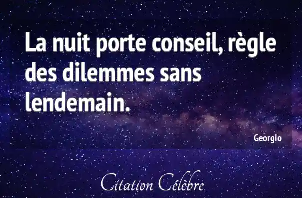 La nuit porte conseil, règle des dilemmes sans lendemain.