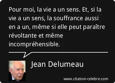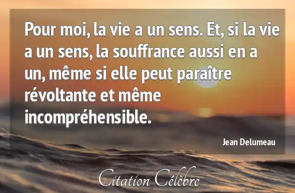 Pour moi, la vie a un sens. Et, si la vie a un sens, la souffrance aussi en a un, même si elle peut paraître révoltante et même incompréhensible.