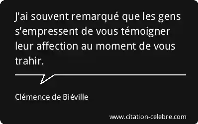 J'ai souvent remarqué que les gens s'empressent de vous témoigner leur affection au moment de vous trahir.