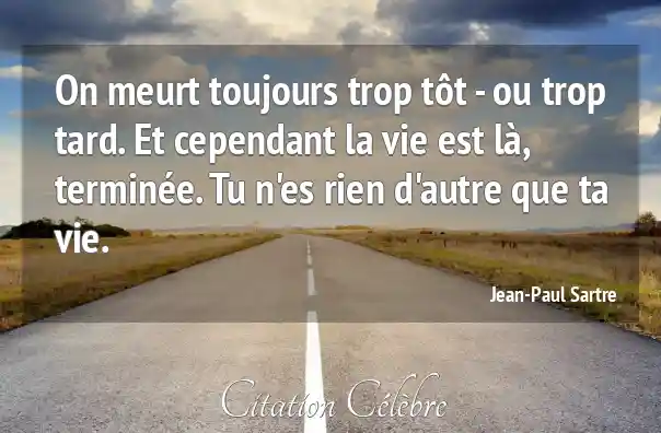 On meurt toujours trop tôt - ou trop tard. Et cependant la vie est là, terminée. Tu n'es rien d'autre que ta vie.