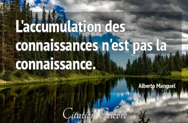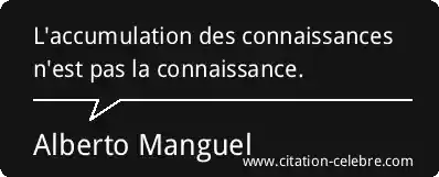 Citation Alberto Manguel connaissance : L'accumulation des connaissances n'est pas la connaissance....