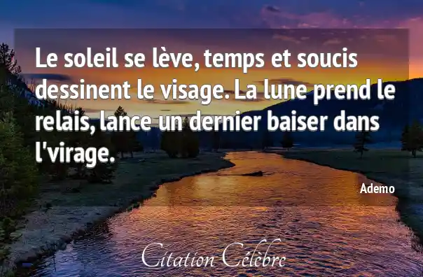 Le soleil se lève, temps et soucis dessinent le visage. La lune prend le relais, lance un dernier baiser dans l'virage.