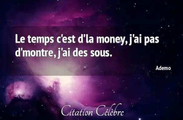 Le temps c'est d'la money, j'ai pas d'montre, j'ai des sous.