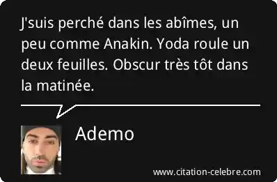 J'suis perché dans les abîmes, un peu comme Anakin. Yoda roule un deux feuilles. Obscur très tôt dans la matinée.