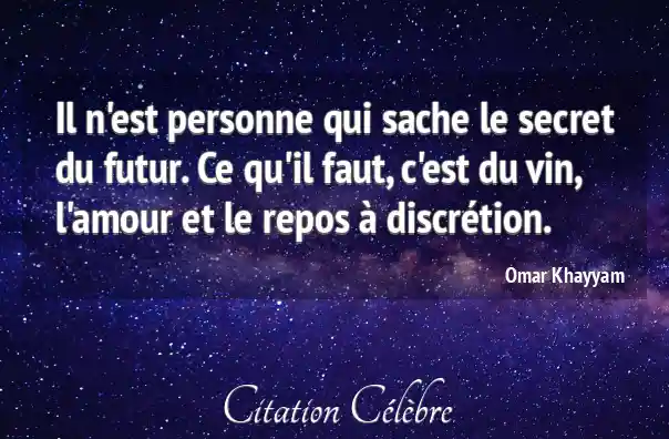 Il n'est personne qui sache le secret du futur. Ce qu'il faut, c'est du vin, l'amour et le repos à discrétion.