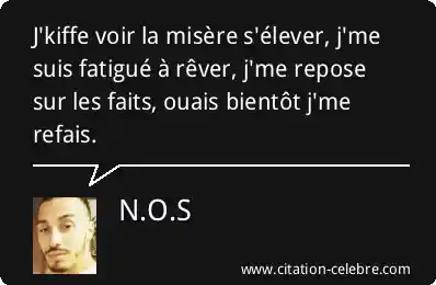 J'kiffe voir la misère s'élever, j'me suis fatigué à rêver, j'me repose sur les faits, ouais bientôt j'me refais.