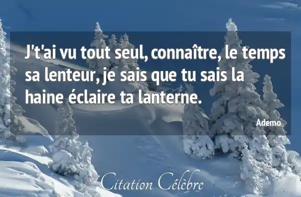 J't'ai vu tout seul, connaître, le temps sa lenteur, je sais que tu sais la haine éclaire ta lanterne.