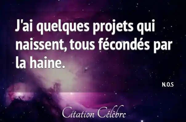 J'ai quelques projets qui naissent, tous fécondés par la haine.