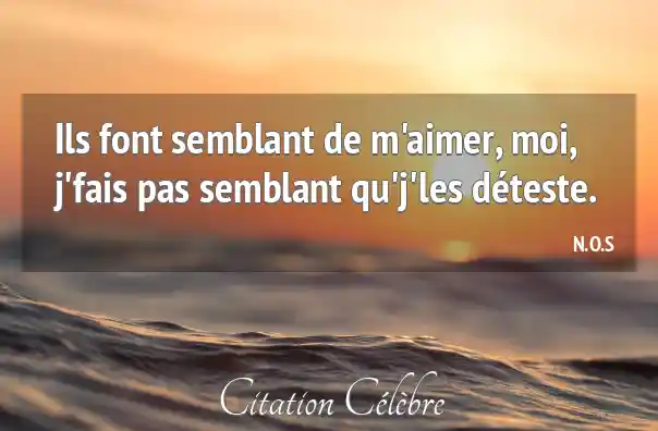 Ils font semblant de m'aimer, moi, j'fais pas semblant qu'j'les déteste.