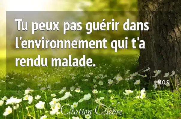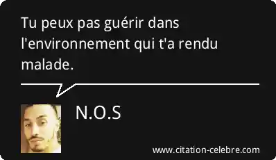 Cette citation, attribuée à N.O.S, exprime l'idée fondamentale qu'il est souvent impossible de se rétablir, de changer ou de progresser si l'on reste plongé dans l'environnement, la situation ou la relation même qui a été la source de son mal-être, de ses problèmes ou de ses souffrances. Pour guérir ou s'améliorer, un changement de cadre est nécessaire.