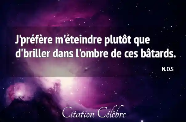 J'préfère m'éteindre plutôt que d'briller dans l'ombre de ces bâtards.
