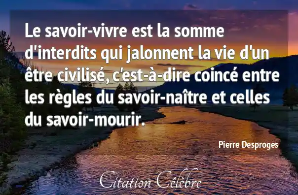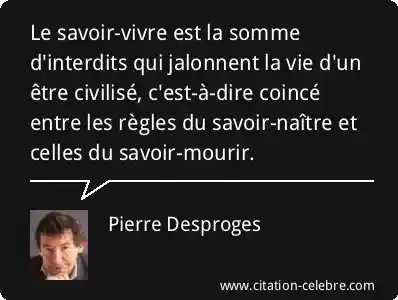 Le savoir-vivre est la somme d'interdits qui jalonnent la vie d'un être civilisé, c'est-à-dire coincé entre les règles du savoir-naître et celles du savoir-mourir.