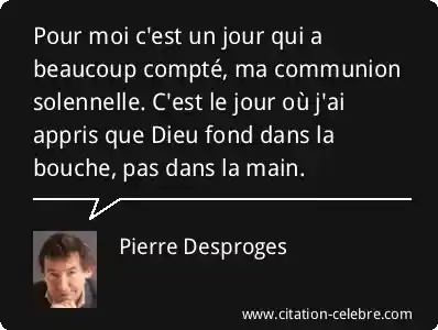 Pour moi c'est un jour qui a beaucoup compté, ma communion solennelle. C'est le jour où j'ai appris que Dieu fond dans la bouche, pas dans la main.