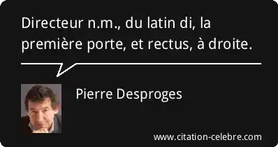 Directeur n.m., du latin di, la première porte, et rectus, à droite.