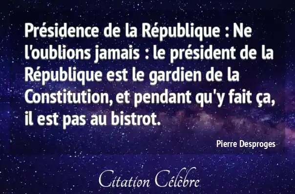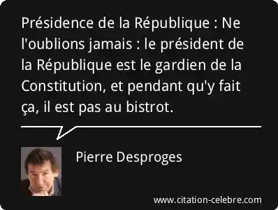 Présidence de la République : Ne l'oublions jamais : le président de la République est le gardien de la Constitution, et pendant qu'y fait ça, il est pas au bistrot.